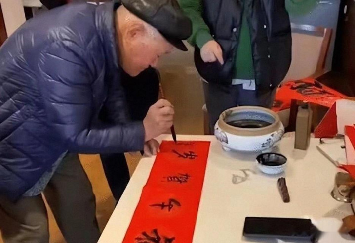 看他在三十平的客厅里摊开毛笔,像在舞台上再次亮相;
